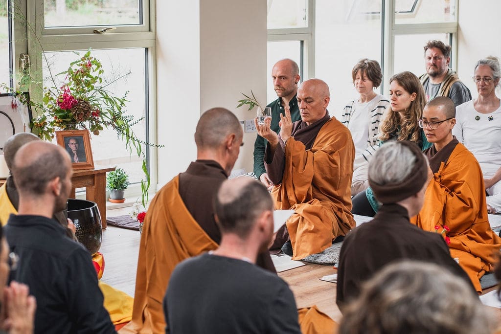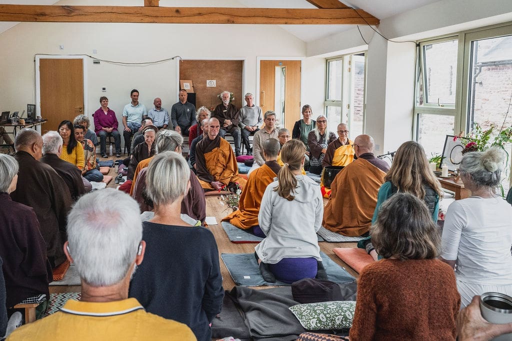 As our capacity for in-person gatherings is currently limited while we await completion of the planning permission process with the local council, we were only able to invite a small number of guests, including UK Dharma Teachers, Trustees, Delivery Team members, the previous owners of the property and a few representatives from across our sanghas.